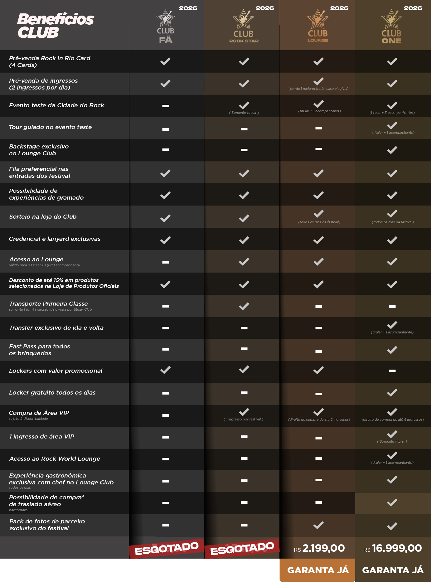 Inicialmente, teremos duas categorias: Rock in Rio Club Fã 2026, Rock in Rio Club Rock Star 2026.