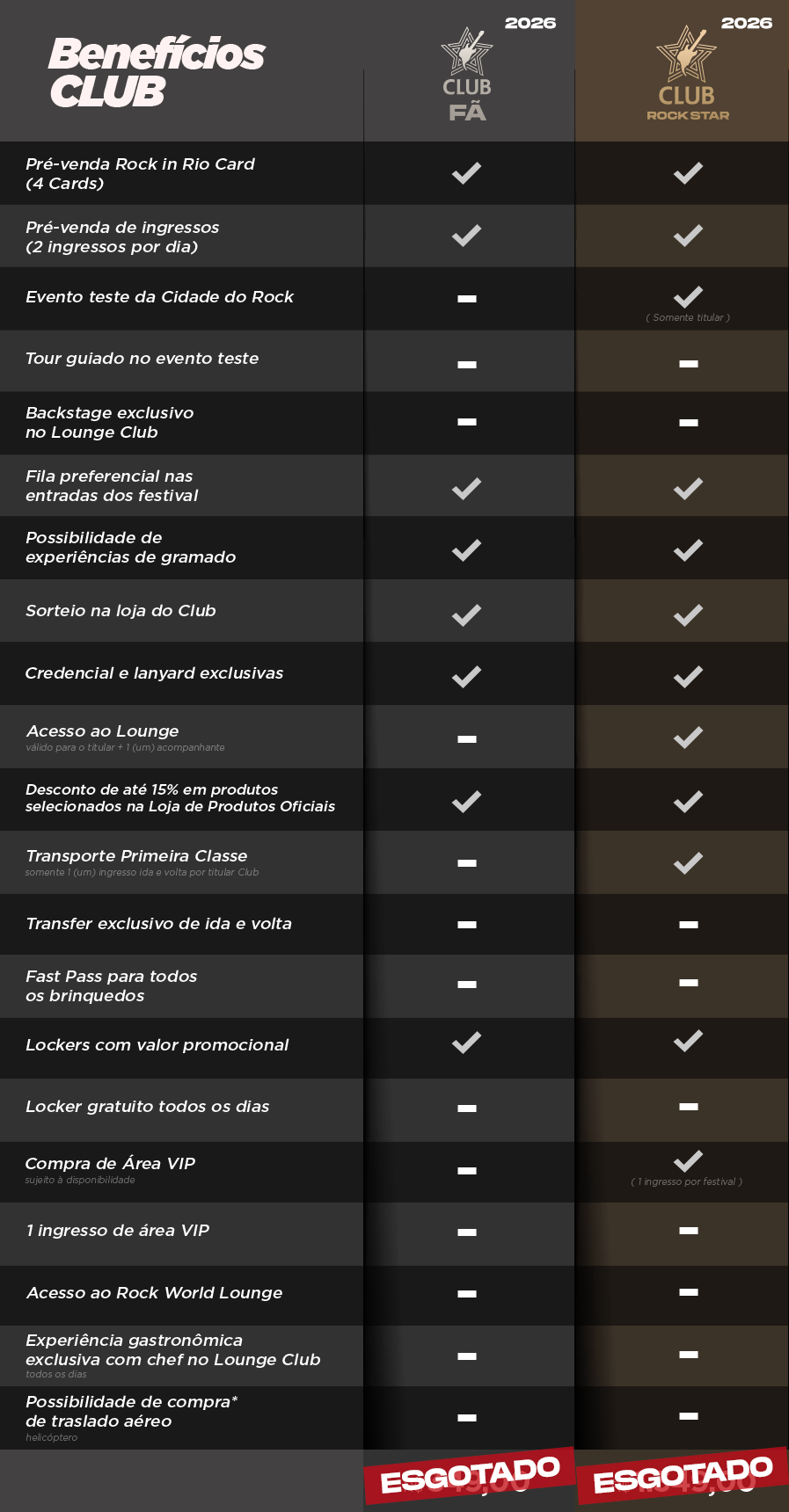 Inicialmente, teremos duas categorias: Rock in Rio Club Fã 2026, Rock in Rio Club Rock Star 2026.